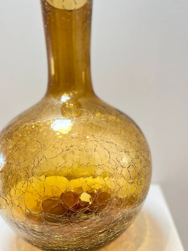 Handgeblazen vaas gemaakt van uniek glas craquelé in een mooie kleur donker geel. Prachtig stukje vakmanschap!